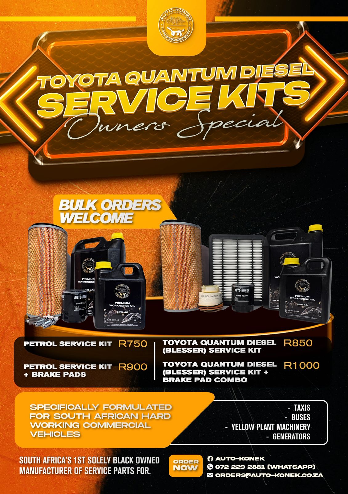 Auto-Konek delivers reliable automotive service parts and lubricants that keep fleets and commercial vehicles running without downtime.